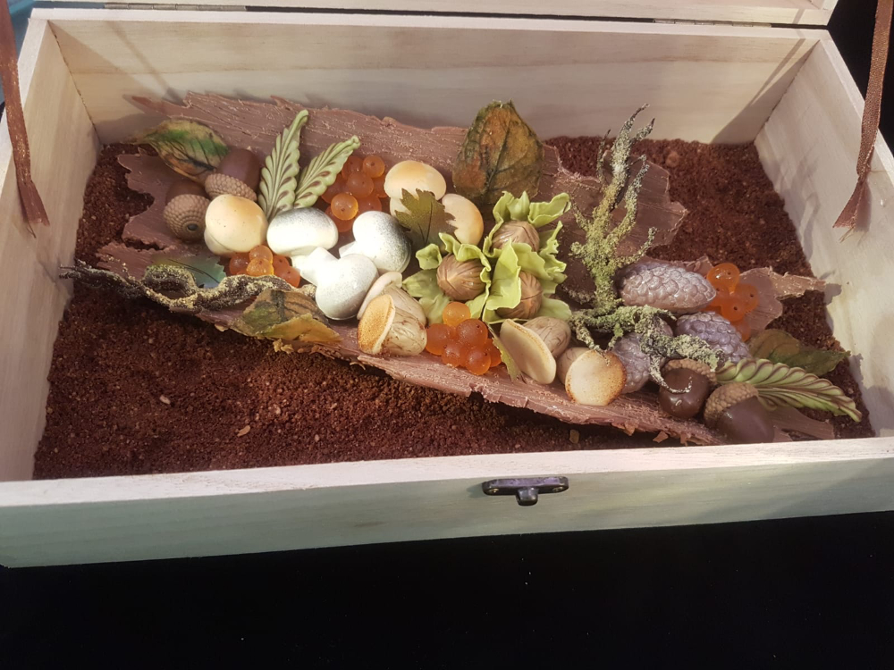 Honig noten dessert met citrus biscuit herfstblad en nougat ijs