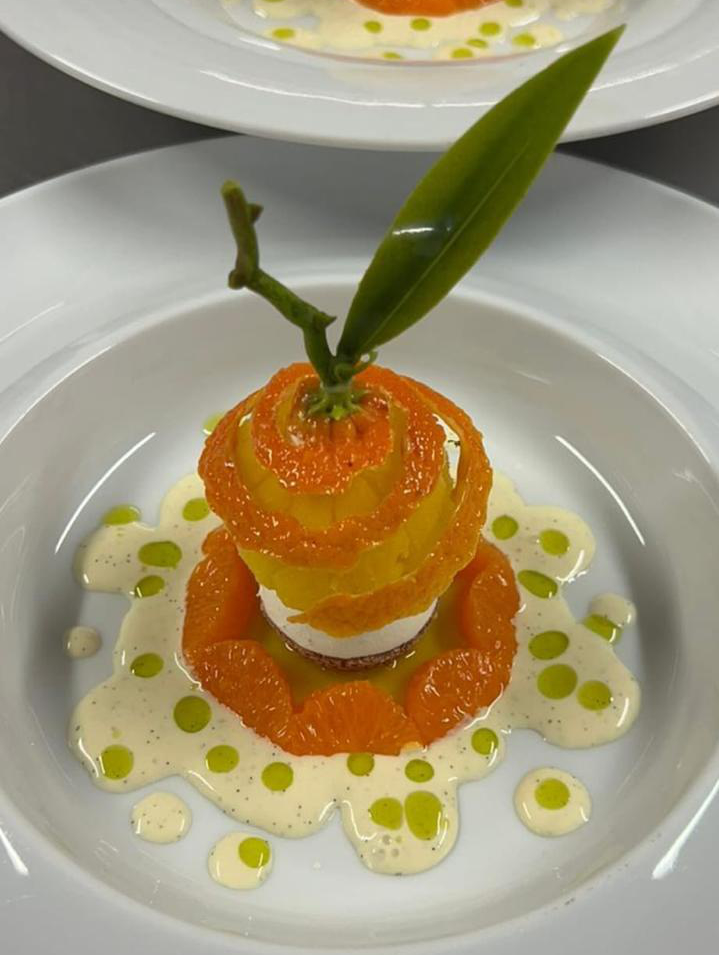 Mandarijn schil met granité en gemarineerde mandarijn