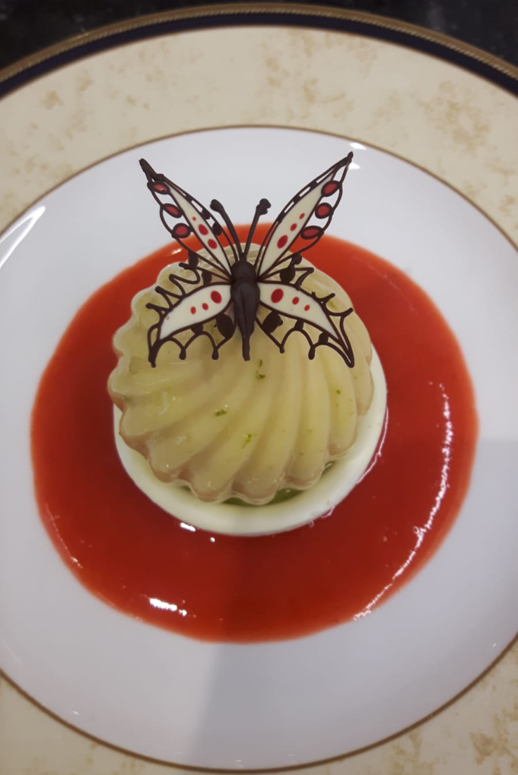 Roos aardbei limoen ijs (met chocolade vlinder)