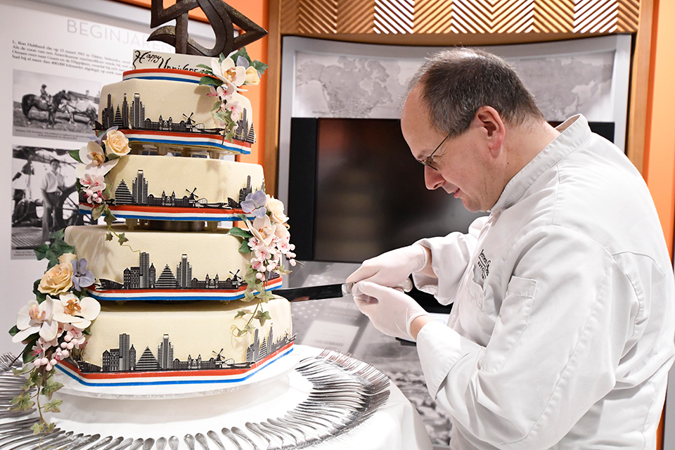 Jeroen levert de taart op de huwelijksdag persoonlijk op de trouwlocatie af en hij doet bij voorkeur zelf de presentatie op bord. Soms is de bruidstaart in de plaats van het dessert bij het diner.