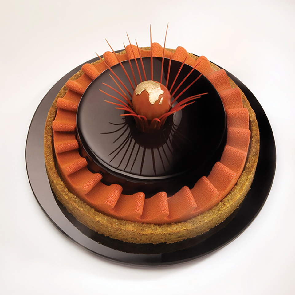 Pie made of tangerines, pistachios, chocolate and Cointreau